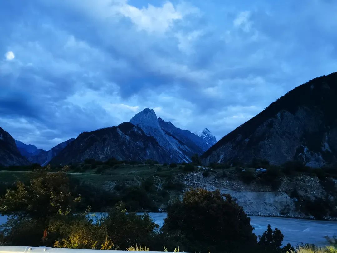 跑了几十公里后,小堵了20分钟。通行后才知是车祸。摩托手和汽车对撞了,看样子不轻,生命堪忧。自驾车者安全行驶太重要,无论事故大小,对一个人家来说是天大的状况。到了居住地芒康县已经10点钟。行程布局,变化无处不在。芒康县排队3个小时,刷了"藏易通”健康码,通过了防疫检查。摸黑夜路到了驻地。这也是没有办法的事。房间是预订好的。个个疲惫不堪,晚饭自己填巴点儿解决。找到床板子倒头就睡去。这慢慢的才理解了"318此生必驾"的内在意义。除了让你看了世上最美丽的风景,也让你体会欣赏美丽所付出的代价。这真的是一次修心修行之路。7点半从如美出发。临行在看到了这个偏僻小镇的模样。澜沧江就在村旁流淌,水流混浊。如美村在大山拥护的深窝,温度较高,植被也稀疏。老天厚爱,这个村子有特别的资源,那就是"低海拔"。果然,不是我想到了,资本嗅觉更灵敏。压准了今后西藏的旅游井喷,狭窄的地方到处是兴建酒店的工地。在当地还驻扎有中交建,中铁建的国家队,正推进川藏铁路的建设进度。不亲临现场,不知道这项伟大工程的难度。处处是飞鸟也惊心的陡崖峭壁,横断山,一个难字儿可不够说。预计的行程是经左贡、八宿2县,目的地是林芝市管辖的波密县。如美出发到左贡的路上,碰到一队执行任务的军车。后还有警车护驾。在西藏,解放军是备受尊重的。"金珠玛米亚古都"。军人为西藏的建设付出了血的代价。警车,后边紧随5台藏游的摩托骑手,我们的两个车紧跟,再后是有序的几公里长蛇车队。真像大型国宾仪仗长列。逗的大家好乐。摄影家们抓拍的忙乎。以至通过近海拔5千米的山口也没觉得气喘。一路不会累,到处是风景。左贡县城建设的很漂亮。城市不大,但细节管理的好。藏区的城都一个范,山在拱卫,城挤在狭小的空间。但只要规划的好,层次错落,立体感优美。生活在这里真有香巴拉的感觉。左贡的风景优美。路过邦达地区,一旁就是漂亮的邦达草原,姐妹湖。这里有自驾者的大型露营地。业拉山口观景点小憩。4658米高程。远望多拉神山,各种形态的山兄弟组合。除了留美留影,也送去我们的祈愿。自然的奇观应有说不出的玄机。藏人对雪山格外的尊重。每个区域的领衔高山雪山,必被人格化神山或圣山而顶礼膜拜。梅里雪山才5千多米高,但左贡八宿一带至为尊重。每座雪山都有一段神格级的传说与故事。邦达镇到八宿县城,这一段是318自驾者永远的记忆。这叫著名的"怒江72拐"。海拔高程直下一千多米。有人说12公里,有人说16公里。一边是临江的悬崖绝壁,一边是松动易落的土石突兀,真够惊险。下午4点路经八宿县城。八宿是藏语中意思为"山脚下的勇士"。文化抽象就很刚勇。八宿城周围的山不至于高大,但造型颜色十分独特。红沙石山靠丹霞地貌,黄色的,黑色的山体被雨水冲刷成多种造型,还有湛蓝色天色,洁白的云朵做背景,哇,天然画屏。有刺激的几十公里,是驰骋在怒江峽谷之中。怒江咆哮,绝壁如削,才感觉到什么叫怒江。八宿境内的然乌湖,非常的明丽,她是怒江的调峰湖。然乌湖很大,与内地的水库不一样,她是双重性格,原始森林映衬的一段,娴雅恬静,大姑娘般素容高贵。又一段就是和怒江的活水奔腾。洒脱不羁。原以为一路跑的还顺当,天黑之前到达。在八宿然乌,又排队做了一次疫检。又耗去一个多小时。到达波密县旅馆,又十点多了。大概不只我消极,真想吃一颗后悔药。
