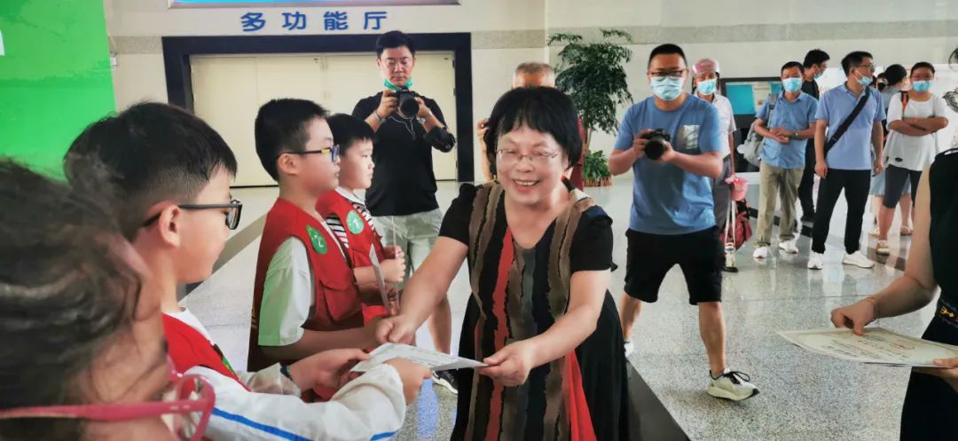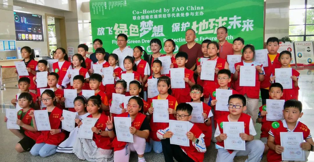 中国晚报摄影学会执行会长司马小萌等嘉宾为孩子们颁发“环保小卫士”证书并为画展剪彩。