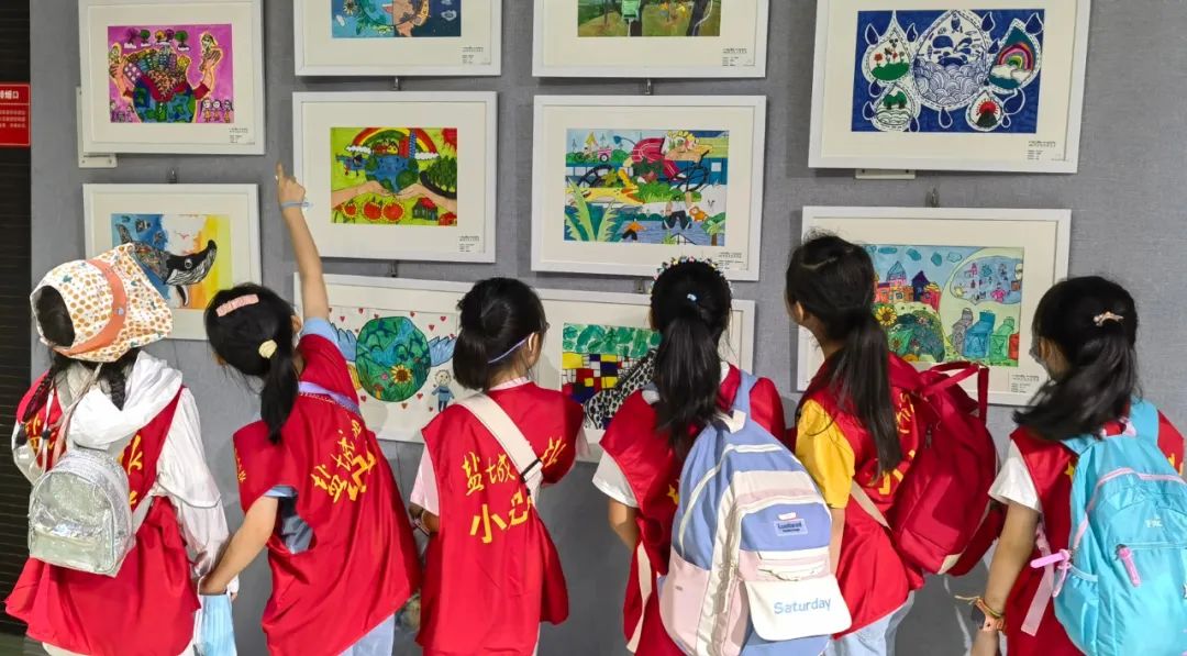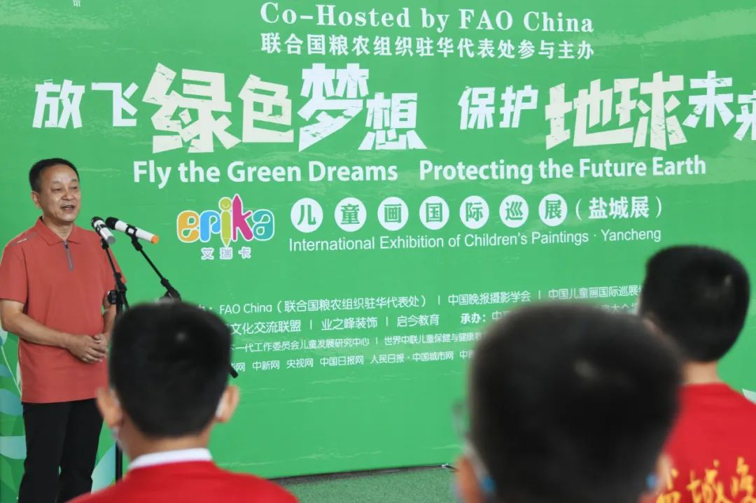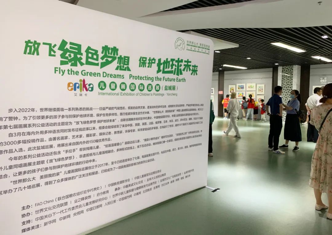 7月25日-28日,由联合国粮农组织驻华代表处、中国晚报摄影学会、中国儿童画国际巡展组委会共同主办的“世界那么大 美丽我的家”——2022“放飞绿色梦想 保护地球未来”艾瑞卡儿童画国际巡展(盐城展)在盐城市图书馆展出。这是继辽宁鞍山、江苏宿迁之后的第三站巡展。来自中国、美国、英国、法国、俄国、日本、埃及、波兰、多米尼加、朝鲜等10个国家150幅入选作品参展。此次画展得到了盐阜大众报报业集团、盐城市文化广电和旅游局、盐城市图书馆的特别支持。