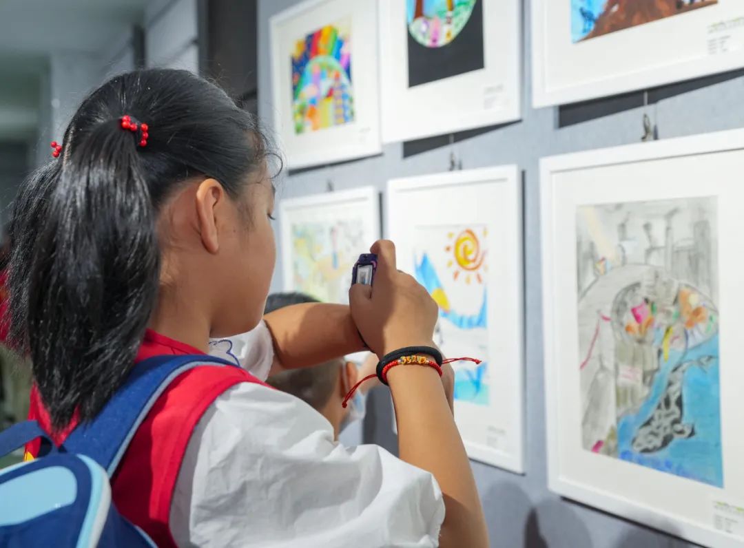 开幕式后盐城晚报的小记者们参观了画展,小记者朱祺彦激动地对记者说:“看到世界各地小朋友画中的家乡,我更加热爱我自己的家乡盐城了,我的家乡风景如画,我也要把我的家乡画出来给全世界的小朋友欣赏!”
