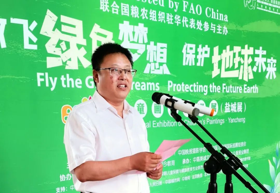 盐阜大众报报业集团党委书记、社长李强在开幕式致辞中提到:本次展出的画作有助于少年儿童认识自然、了解世界,通过融入环保理念,引领和教育少年儿童参与到保护地球环境、践行低碳环保的生活方式中来,一起实现人与自然和谐共生、建设美好家园的愿景。