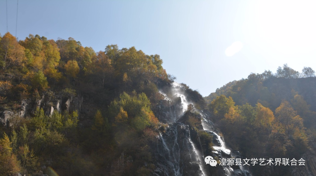 从幽深如时光隧道的洞口隆隆驶入大黑沟,如同踏进了秘境一般的青山翠谷。大黑沟花红柳绿的景观依旧,所不同的是人的心境不一样了。大黑沟由南向北所呈现的景观依然井然有序:黑鹰峰山势崔嵬,大多被绿色覆盖,偶有裸露的岩石显露峥嵘,山脚被翠绿的青杨遮蔽;坐佛崖一半是裸露的石山,一半被植被覆盖,山形像一尊胖乎乎的坐佛思考世间奥妙;坐佛崖之后便是七层岩,层层叠叠的岩石共有七层,那是地壳运动的杰作,可看作是袖珍版的地壳岩层博物馆;继续往里走便是突兀而立的巨石叫汽车石或大象石,有点天外飞石的味道,引人遐思;之后便到了杏树湾,那是老一代景区管理者呕心沥血栽种而成的,十年树木,现已长成了颇有林莽气势的杏树林带;到了白龙池,只见高耸的山岩上白瀑飞泻,俨然水流直下三百尺,荡人心魄,吸人眼球,此处是大黑沟景区的最出彩之处,所有游客都会在此驻足留影。我们湟源作协一行五人匆匆下车享乐般到瀑布前拍照留念,快乐的氛围已氤氲四周,旅游的人群已摩肩接踵。从白龙潭往里两岸青山相对,西边便是夹道、石门和一线天,由于植被过于茂密,遮蔽了石门及一线天的景观,我们只能靠想象来品味匿于幽处的景观了。车流穿梭如飞,欢乐的气息越来越浓。九渠桥宛如长蛇蜿蜒,环绕了多个池塘,看得出九渠桥下的池水正在蓄水,管理者采取自上游而下游注逐个蓄满池水的方法。