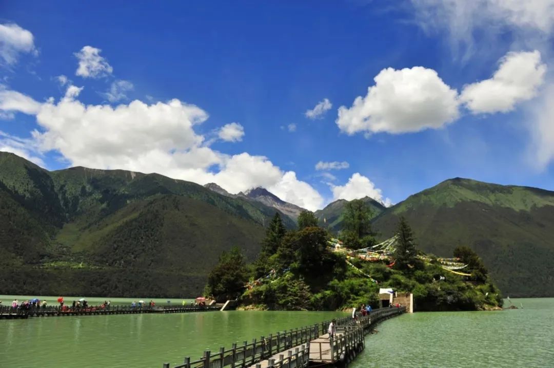 百度过"巴松措"后吃了一惊。这里的美不光是游客给的颜值。2017年,即被评为中国5A级风景名胜区,西藏首家。说明看这个措不会错。介绍的巴松措为什么好,因为藏语中的巴松措是翡翠般绿水的意思。这里有西藏最绿的水。还因季节的变化呈现深蓝或浅蓝等色,别名三色海。眼睛直播了,果不其然。其实风景名胜区的品牌还得有文化支撑。果不其然。水不在深,有龙则灵。巴松措中有湖心岛,上建有一座"措宗寺"。巴松措的奥秘和神源自于此。
