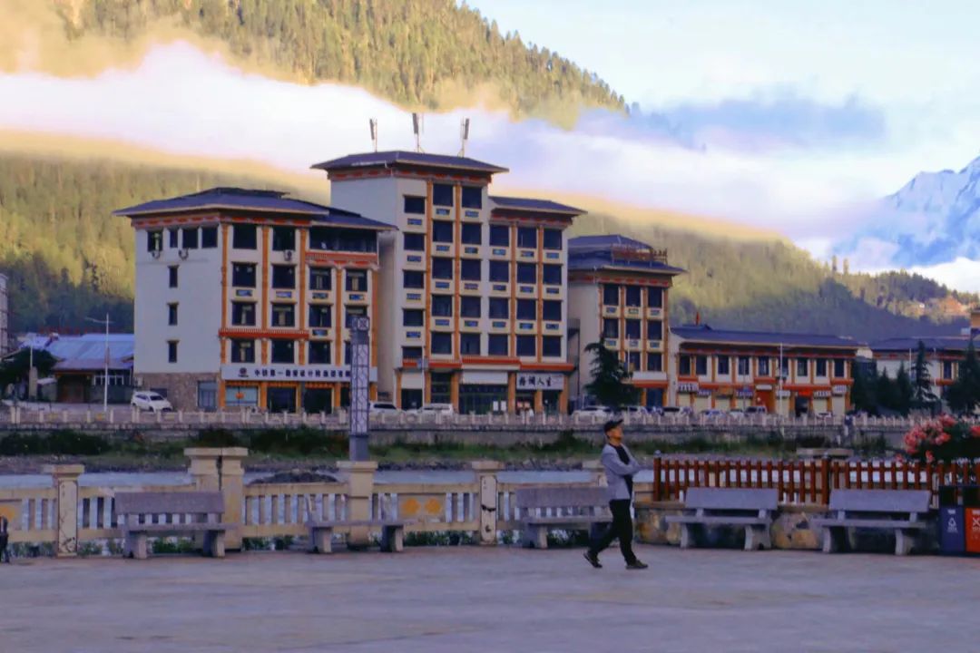 一觉醒来,是波密的早晨。出了酒店才知下榻在县城中心。经过的几个西藏县城,都是异曲同工之妙。标配是四面环山,家门口大小一条江流。一般在多云天,伸手就可抓住飘忽的云岚。藏区的县城一般也就一半万人口。房子外墙都是彩色粉妆,整齐划一的方格式窗框。一种建筑文化浸透万里藏地。波密属于林芝市管辖。