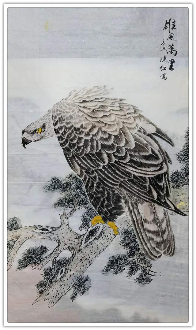 可贵之处,即是她在专业大成的情景下,并没有搞动物作品的“范式制作”,而是扬起了我笔画我心,外师造化中得心源的风帆,凡画老虎或是其她各种各样的动物作品,都是独家风范,你找不到有一件作品是同质的,也不会在她的作品里找到任何同类的作品!这就是陈红画画与众不同的非凡成就。经于这样的非凡,我们可以给出这样的判断,在传承两宋画法的过程中,陈红绝对不是仅仅可以表达精湛技法的美术工匠,而是一位用精湛技法表达东方审美精神的神通雄才!这就让她的工笔老虎作品件件有孤品价值,无有同质,件件都是孤标尘外的珍品!众多的收藏者,之所以对她的绘画作品都给出了价值连城的收藏判断,显然看中了其作品独一无二的艺术品质。收藏者的真金白银,最有丹青作品可以古今相传的说服力!