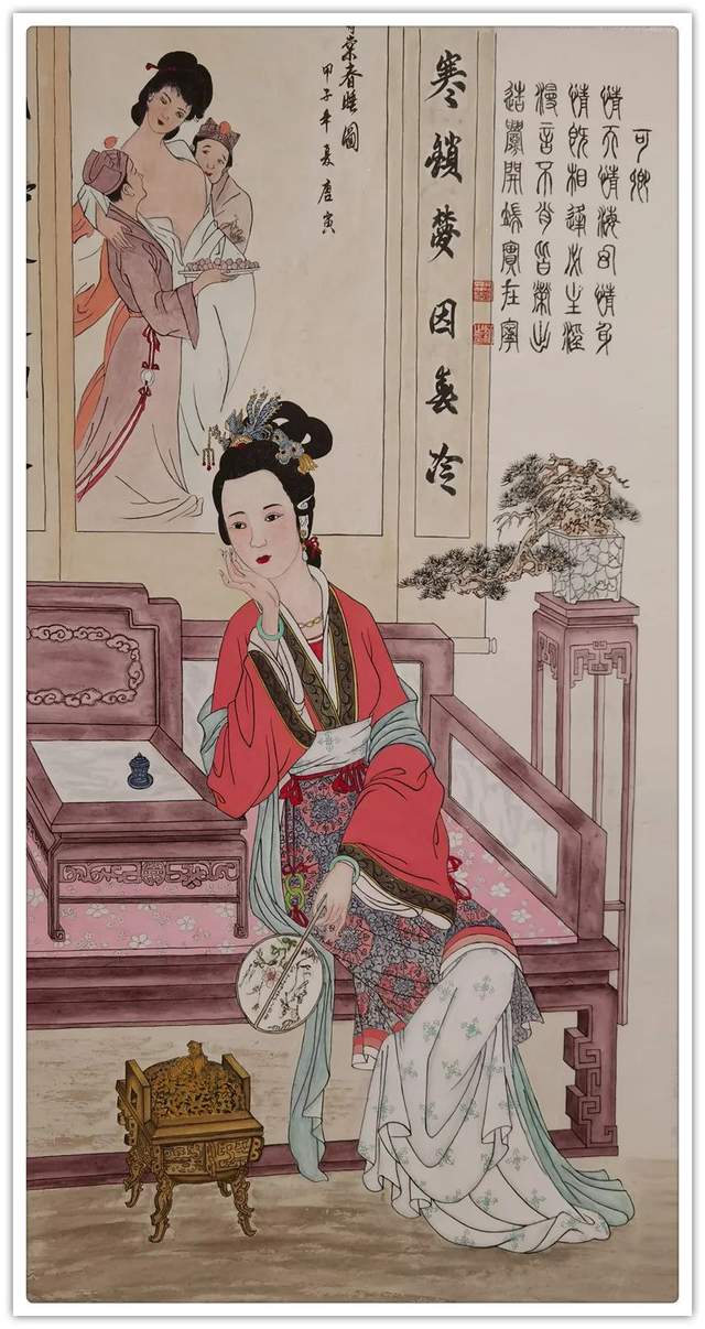要评价她的绘画作品的高品质,离不开画法的观鉴。中国的工笔技法,成于唐,兴于两宋!自此之后,应该是走了下坡路,因为在下坡路的过程中,中国工笔的创作原则改成了“制作范式”。即是许多后世画家搞工笔作品创作,对法度体系掌握还是比较娴熟,但是又被旧有的法度拘泥的相当厉害。比如画老虎,在法度的拘泥下,你画的、我画的、她画的老虎形象与神态都趋于类同!同质化的制作模式,大大限制了工笔的创新与发展,这是后世工笔作品很难超越两宋的重要原因!现在看陈红的工笔作品,对专业的磨砺一丝不苟,把两宋画法掌握得炉火纯青,在专业上达到了成熟无量的境界。