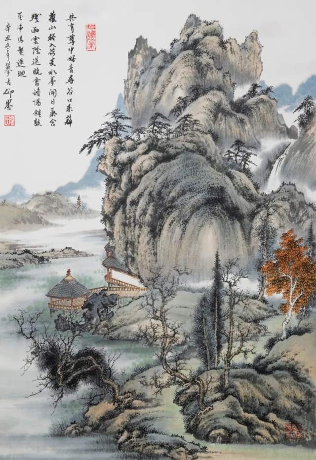 观当代宫廷画派画家陈仰曌的山水画作品,让观者感受到形态是山川的体貌,灵魂就是自然运转的气象,风云、雨雪,亭宇楼阁,无不是生命气象。山川的灵秀、韵味、律动、险要、深幽,决定了山川的灵性。名山大川也是由此认定。