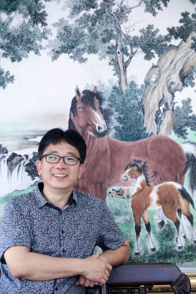 “继日伴砚,集蓄溢涌,至今仍春风熙岸,不识两鬓斑白。岂有豪情似旧时,花开花落两由之。予今集山水、翎毛走兽、花鸟、人物、书法、篆刻于朝暮,虽专工宫廷画派八骏图,而博涉多优。似逸少不及溥、启、(松风画会:溥心畲 、溥松窗 、溥佐、 启功等为代表)总其终始,如今,盈缩于洼池,舒心展怀,跻升知非知命之年。”这是当代宫廷画派画家陈仰曌对笔者的讲述。
