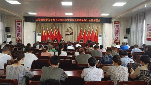 《条例》出台后,古塔街道立即组织机关同志集中学习,要求干部职工在通读条文的基础上,熟知《条例》内容,遵守《条例》、践行《条例》。同时,开展《条例》进家庭、进企业、进乡村、进社区活动。坚持“条例宣传 志愿先行”的原则,成立《条例》宣传志愿服务小分队,在城区主次干道等人流密集区域,开展《条例》宣传活动。活动现场,志愿者通过向市民群众讲解条例内容、设置宣传展板、发放宣传资料等形式,大力宣传《驻马店市文明行为促进条例》,号召广大市民争做文明行为的践行者。
