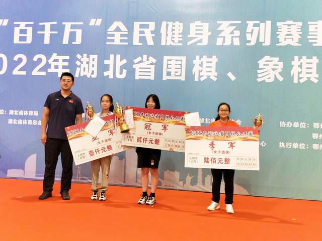 鄂州市围棋协会积极备战省围棋公开赛,分别荣获:男子团体第三(市围协)、第四名(宝武鄂钢),男甲组亚军(张晓丰)、第四(朱波)、第六名(程勇),男乙组冠军(张万俊),男丙组亚军(胡睿)、季军(陈帆),女子甲组冠军(杜青莹)。