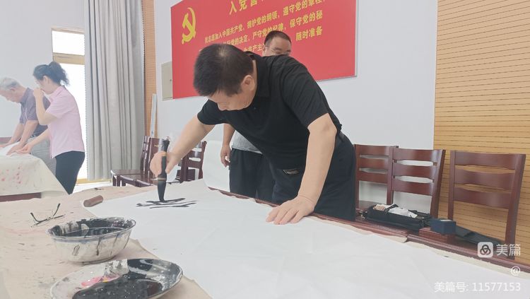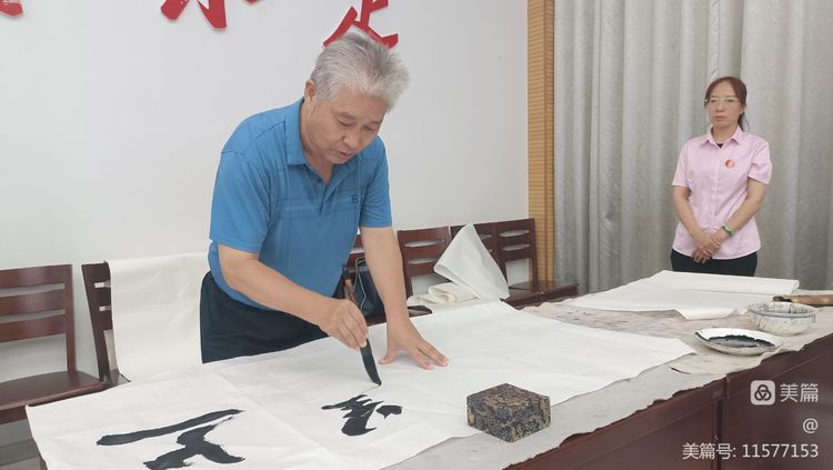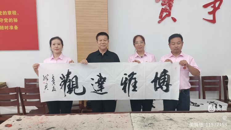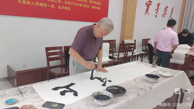 淄川区老年老干部书画两会联袂淄川普照寺书画院现场举办书法笔会予以祝贺。