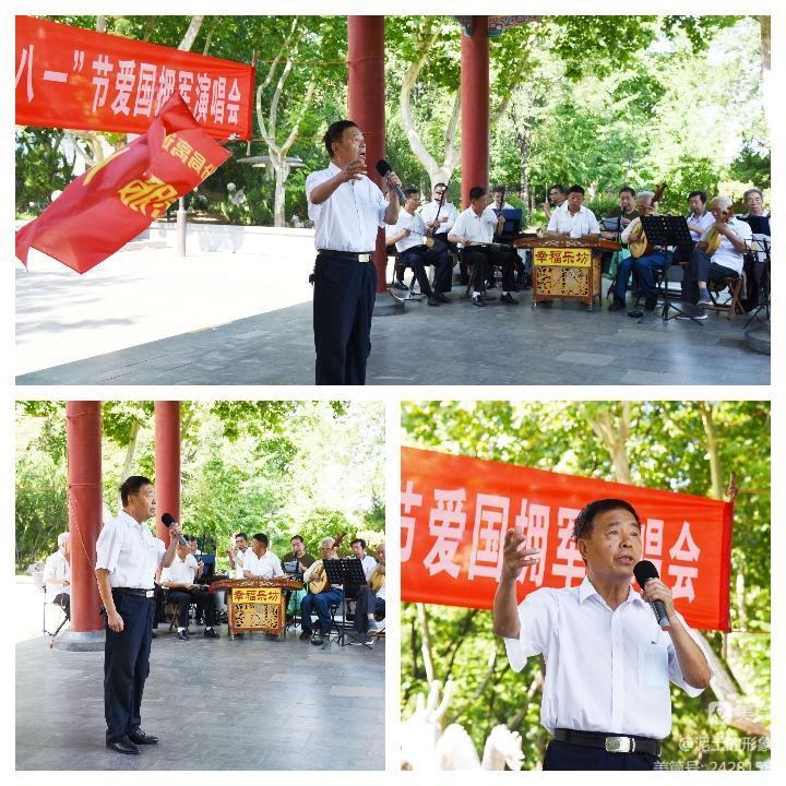 八一旗红,颂歌嘹亮。8月1日上午, 幸福乐坊艺术团,在鲁泰文苑举行庆祝八一节拥军爱国文艺演出。