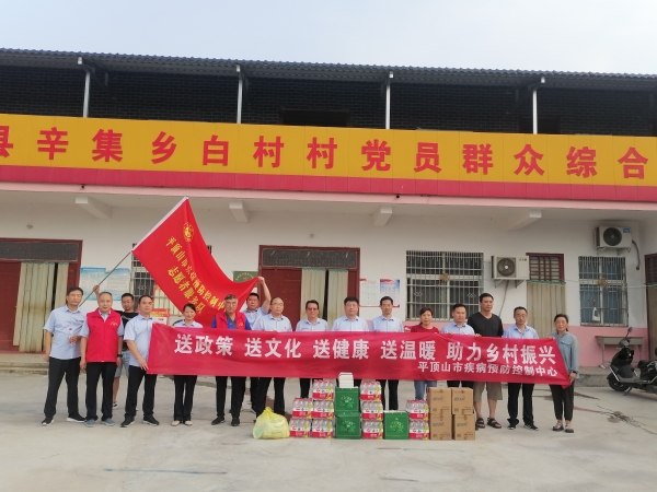 为更好发挥文明单位示范引领作用,助力全面推进乡村振兴、加快农业农村现代化,促进城乡精神文明融合发展。当天,平顶山市疾控中心党委委员、副主任马西平、张明超等一行15人到白村开展慰问帮扶工作,并与村“两委”干部和驻村工作队进行了座谈。了解了村“五星”支部创建、常态化疫情防控、村民健康状况及就医情况等,查看村卫生所疫苗接种情况,到脱贫户、监测户家庭走访询问收入,还向白村捐赠了生活用品及防疫物资。