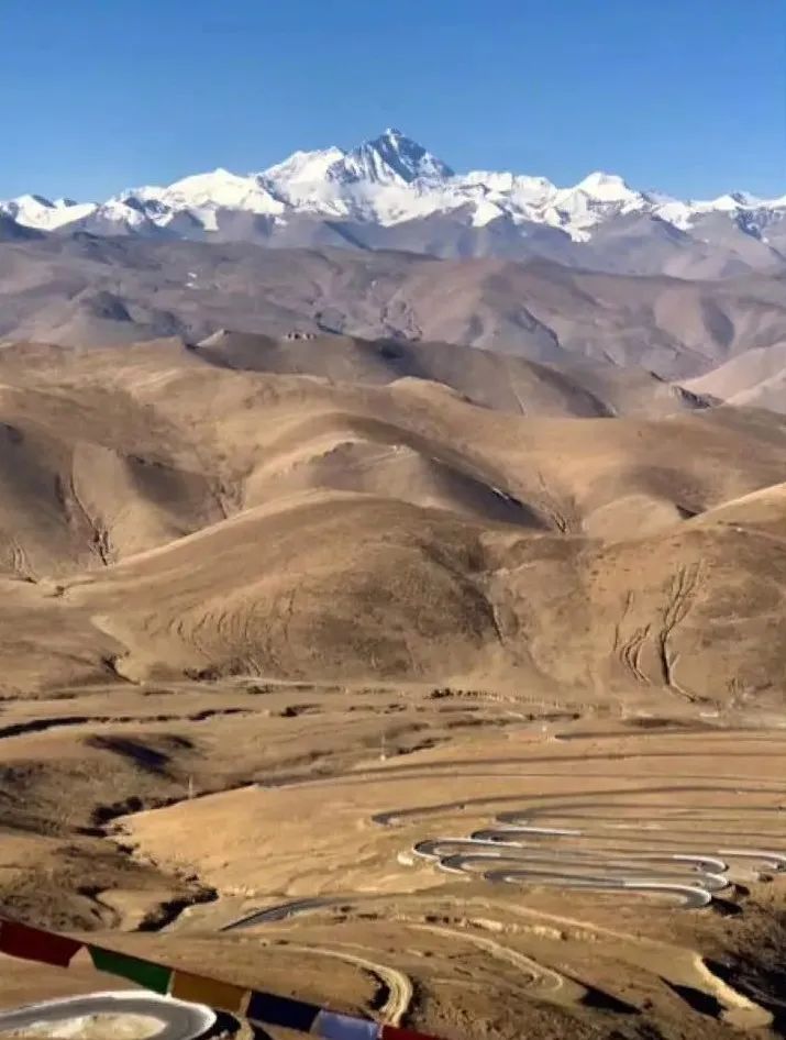 晚上住在日喀则。激动的心已经跳起来。明天要早起,去朝拜喜马拉雅山的金顶,珠穆朗玛峰。川藏318之旅的最末一站,是中国与尼泊尔边境的珠峰大本营。我们住在日喀则市,珠穆朗玛峰在定日县境内,相距约350公里。定日县海拔4千多米。行程攻略是,当日从日喀则出发,当日返回。明知道很辛苦。从太原出发,已经是第13天了。要到喜马拉雅山拜见圣峰珠穆朗玛了,心中莫名的激动。按说咱也是花甲之年波澜不惊的老头儿了,对人间事没啥稀奇惊赫了。但有生之年能面谒珠峰爷,激动啊。因为心跳的欢,影响了睡眠。我们一行人早早爬起来,6点就出发。滥说珠峰爷是错误。藏语"珠穆"的意思是"女神","朗玛"是"第三"。汉译可理解珠穆朗玛峰为集三女神为一的化身。即爱神,雪神,福神之山。从此也映射一条世间道理。女性在地球的任何地方都是厚德载物。我们华夏称黄河为母亲。在藏区,最美丽的羊卓雍湖是守护女神,想不到珠穆朗玛峰也是女神。天道使然。大到海天世界,微至一个人家,没有任何理由对妈妈不好,对老婆不好。日喀则的太阳出来的晚,回去的迟。我们的车搭黑快跑到拉孜县,天才大亮。翻山越岭走天路,大家的心情和我一样,要见珠峰了,仿佛恭敬的去拜圣上。