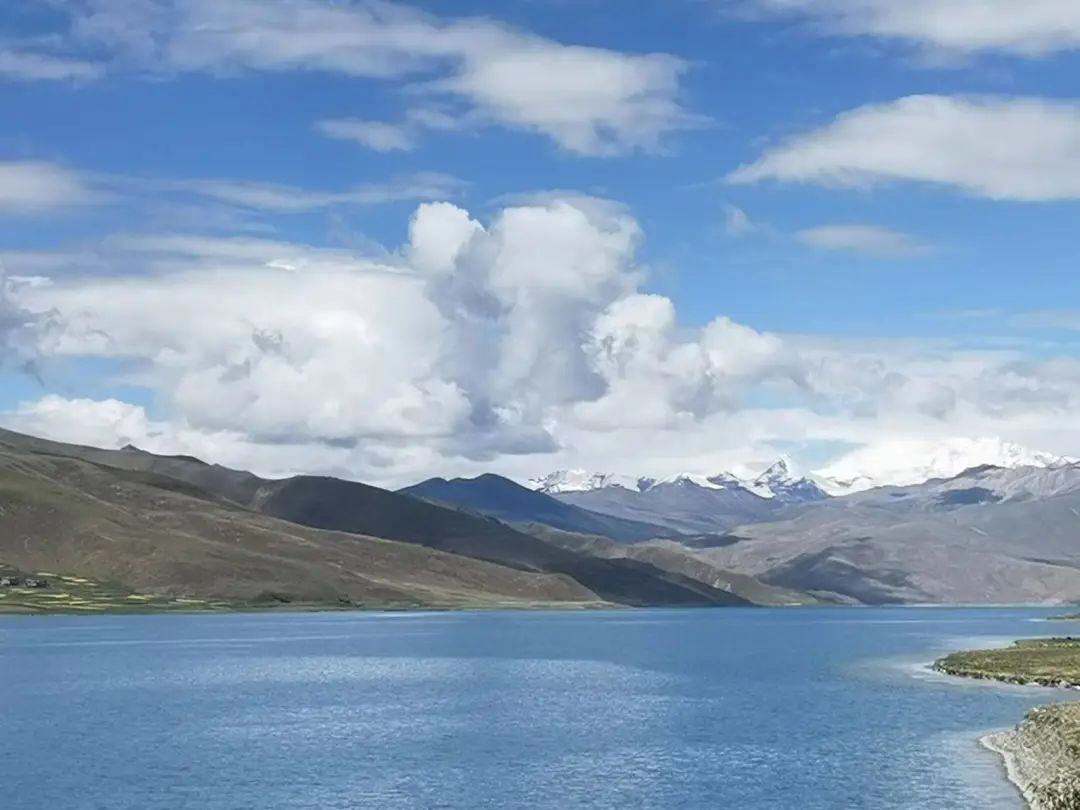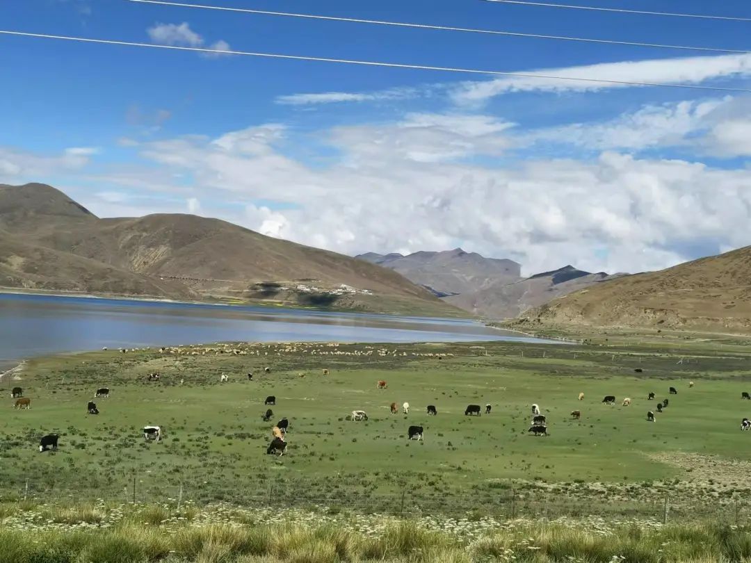 藏族人形容羊湖"天上的仙境,人间的羊卓,天上的繁星,湖畔的牛羊"。冠绝藏南的羊湖就是如此。牦牛群,羊群,远方的雪峰,明丽的阳光。想怎么去感受,描绘,只有你自己来看了。拍照,留影,美好的东西写进血液里镌刻在骨子里才不败。羊卓雍措的神圣,胡说盘点有几方面了。羊湖所在的浪卡子县是山南市。山南是西藏悠久历史文化的发祥地,早在与秦始皇统一中国的前2200年前时,山南最早出现了部落联盟那样的方国,产生了赞普(类似藏王)。到公元7世纪,第33位赞普松赞干布从山南走出来,统一藏区,以拉萨为政治中心。后来宗喀巴大师进行藏传佛教改革后,建立达赖喇嘛的灵童转世制度,寻觅转世灵童的隆重仪式和访寻轨迹,就围绕羊卓雍措进行。此外,羊卓雍措在神话中还是藏区护佑百姓的女神。与观音,文殊,金刚手菩萨一起守护藏人的香巴拉土地。羊卓雍措又称"悬在天上的珊瑚湖"。她躺在高原上多枝多杈,像藏传佛教莲花生大师手中的铁蝎子。藏传佛教宁玛派在羊湖有弘法的寺庙,据说还有莲花生大师的手印。羊湖的路边,时而可见搭建的露营圆型透明帐篷。能展开想象力,到了夜晚,住在里边伴着繁星,拥着羊湖,哇,香巴拉瑶池。