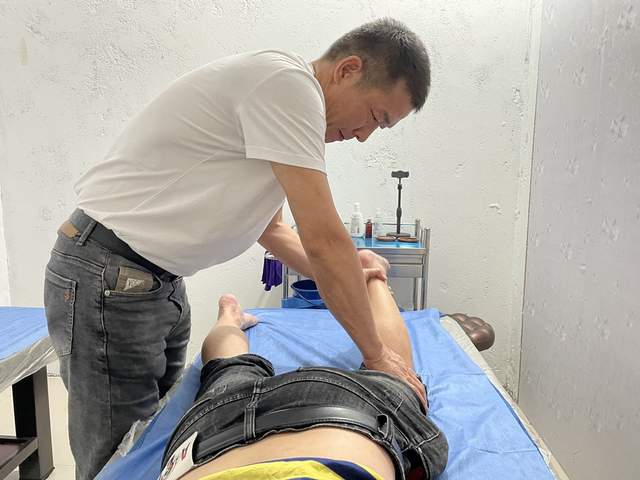 图:黄小山在为疾病患者调理腿部