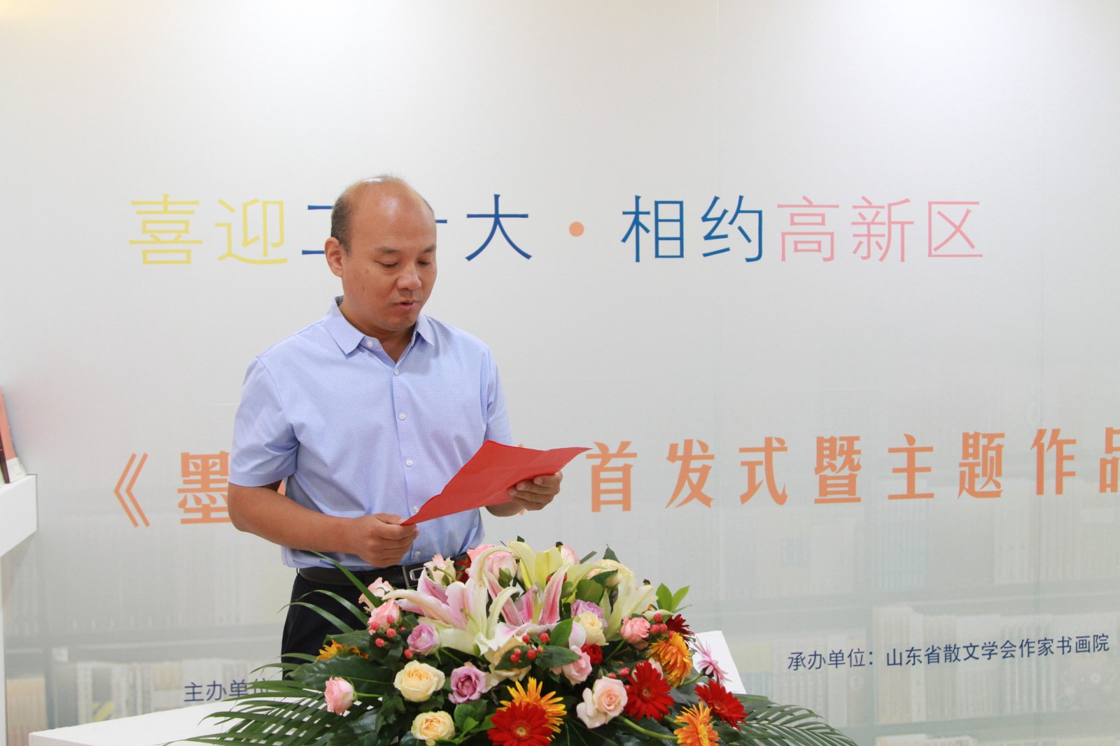 8月6日上午,由齐鲁书画家协会、山东省散文学会、垂杨书院主办,山东省散文学会作家书画院承办的“喜迎二十大·相约高新区”《墨彩济南》首发式暨主题作品展开幕式在济南高新区文化中心举行。
