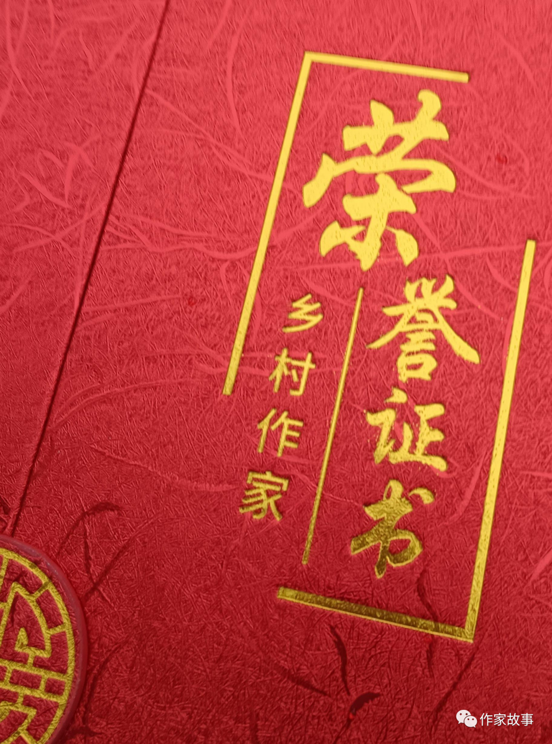 图为作者荣获的乡村作家荣誉证书