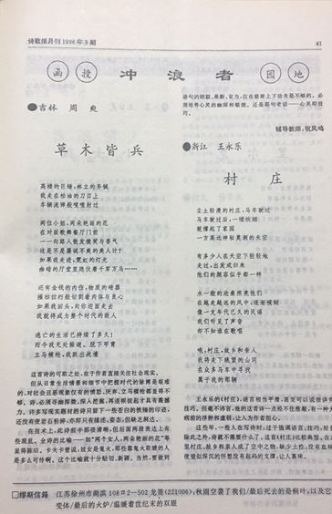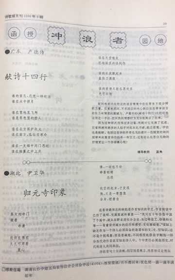 精华热点 中 国 微 信 诗 歌 学 会 安 徽 分 会 (第 96期 总第 096期) 本期诗人:乔延凤 本期编辑:皖江诗潮编辑部 投稿邮箱:1793174454@qq.com 乔延凤的诗 作者简介: 2022年8月12日,诗人、原《诗歌报月刊》常务副主编乔延凤于安徽合肥家中去世,享年78岁。乔延凤先生于二十世纪九十年代主持《诗歌报月刊》期间,延续《诗歌报》优良传统,编发了大量有影响的好诗,经他发现培养的一大批青年诗人也早已在诗坛崭露头角。乔延凤先生策划举办的《诗歌报月刊》函授班,是当时密切联系基层作者、力举诗坛新人的一项重要举措。三期函授班培养出许多优秀学员,他们中有许多人至今仍活跃在中国诗坛。 乔延凤,笔名黎阳。1944年10月25日生于江苏句容,1967年毕业于南京师范学院中文系。历任江苏句容郭庄中学、安徽宣城中学、安徽蚌埠三中高中语文教师,蚌埠市文联《淮河》文艺双月刊诗歌编辑、蚌埠市文协副秘书长,安徽省文联《诗歌报》编辑、《诗歌报月刊》常务副主编。中国作家协会会员,中国诗歌学会理事,安徽省散文家协会副主席。文学创作一级。1978年开始发表作品,著有诗集《蝴蝶伞》《白蝴蝶》《再生之蝶》《乔延凤诗选》,散文集《西山飞黄叶》《乔延凤散文选》,理论集《诗歌苦旅》等。《秧果》获全国散文大赛奖,《碎裂及其他》获《江南》杂志奔马奖诗歌赛佳作奖。 现选发乔延凤先生部分诗歌及文章,以示深切悼念。 山 村 阳光普照,大山环抱 温暖着山里人的居所 错落有致的瓦屋小楼 将清清的溪水一路照亮 正是早春 山头 雾气聚散 风吹着 宛若一座座岛尖 一声高 一声低的 是溪流一路欢快的歌唱 山路上走来的归乡人啊 挎着沉甸甸的背包 一腔的心事 都随着小溪的水 愈淌愈远…… 张恨水纪念馆 一排朴实的平房 走进廊檐,便看到了你平静的目光 早已离开了纷争的世界 此刻,只有树头的小鸟 发出春的急切的啼唤 这里陈列的每本书、每支笔、每块砚、每张照片 都带着你漂泊的痕迹 《春明外史》《金粉世家》《啼笑因缘》…… 一百一十多部通俗小说 将你的名字永久刻在了 文学碑上 何其幸运!你拥有那么多读者 一个叫黄岭的不为人知的小村庄 一位漂泊多年的游子 如今,终于紧紧地相拥在一起 在这个略带春寒的日子,在这排平房里 你小说中的每个人物、每个细节 在淡淡的灯光下 都格外明亮! 夏日北戴河 海湾多么壮观 水浪、立成了一道道雪白的墙 坚硬的礁石、平卧的沙滩 全散发出迷人的光芒 人生中最美好的季节 全裸露在沙滩上了 帆影点点,白云朵朵 一起一伏的 是冲浪者无畏的笑脸! 太阳圆圆的镜头啊 将我们的一生浓缩成了 一朵朵浪花 沙滩—— 柔和、坚硬的沙滩 和我们的生命紧紧相连…… 茶马古道 怒江大峡谷 悬崖绝壁上的鸟鼠道 命悬一线的马帮 正结队而行 他们用不一样的人生 连接着川、滇、缅、藏 直至喜马拉雅山口的最西端 途中的梅里雪山 撩起了缥缈的半遮的面纱 终究还是看不清它的真面 高耸七千米 横亘三百余里 半山上 人马不敢高喧 梅里雪山不期而至的雨雪 就跟灵验的神示一样 绝壁小道突然中断 断崖边 一根悬空的溜索 成为马帮前进的唯一的路 人马都要横空溜向陡峭的对岸 赶马人神情凝重 惊恐的吊马 在溜索上四蹄乱颤 多么惊险的一幕! 只有峡谷的大风 将怒江的波涛 和赶马人的毡帽 一齐吹动 艰难行程中的宿营地 赶马人面对湿树燃起的炊烟坐下 啜饮酥油茶 吃起牦牛肉、糌粑 将来路和归程 细细计算 刚强、坚毅的面庞 映衬着怒江边雪白的野花 彝族、藏族、纳西族 汉族、怒族…… 一队队不同语言组成的马帮 将细线一样的茶马古道 踩成了多民族共同繁衍的经济脉管 …… 洛阳桥 大风吹乱了桥上行人的头发 几个从桥头跑来的年轻人 正好闯入我镜头里 几只木船 在江心红树林轻系 人工养殖的海蛎子 已将桥墩石堤固为一体 远走了的宋元明清海外游子 还能重回桥上来么? 鲤城的刺桐花一年年依旧摇曳 雪狼桥 一生一世不会忘的名字 一座小桥远远守望 包孕吴越的巨浸 波光拍到这里也暗淡 唯有飞沫卷起千堆雪 展示追求的高洁 壮阔中云起云飞 变幻着莫测的神秘 有幸化作一座桥 十二个月 月月听到 太湖的心迹 静 帆 静成唐寅的一幅画 苏州名士点染的山水 总泛着温柔的太湖波光 帆 静 水 动 听得见画页中 微微的风响 一阵黄梅雨 从粉墙黛瓦的水村翘檐 轻轻飘来 几只湖鸥啾啾掠过 仔仔细细看 帆 更静 湖 更亮 戛纳海湾 金棕榈摇曳 晚风轻轻吹荡 各种肤色都徜徉在海滨大道上 空气洁净 不染纤尘 令人多么自在 戛纳海湾啊 最难忘 这沙、这水、这礁岩 这一生中仅有的珍贵时光…… 沉浸在海水里的老人、孩子、姑娘 早把一身的烦恼,抛得光光! 原本地中海之滨 一处无名的小渔村 今天 让我细细把你欣赏 远近悄悄亮起的 灯火 把今生和来世的苦乐 都忘在了望不见尽头的海上 观 音 跳 这脚印多么清晰 石崖边 将我们与隔海而来的观音 一下子拉近了距离 石壁上斜立的小草 用风雨中的身姿 摇亮了我们的眼睛 海天佛国 烟波茫茫 留下多少善男信女 虔诚的心愿 都在这观音的一跳之间 普陀鹅耳枥 一个独特的树种 在这里长得如此茂盛 当我攀登佛顶山的途中 看到你的青枝绿叶 细细地左右打量 鹅耳枥,你潇洒的身影 恰如一位亭亭玉立的少女 又恰如一位涉世未深的青年 在普陀山的风