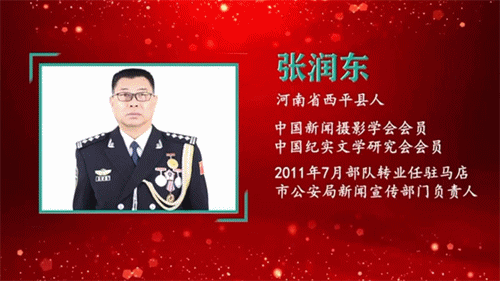 张润东,河南省西平县人,中国新闻摄影学会会员、中国纪实文学研究会会员。2011年7月从部队转业,现任驻马店市公安局新闻宣传部门负责人。
