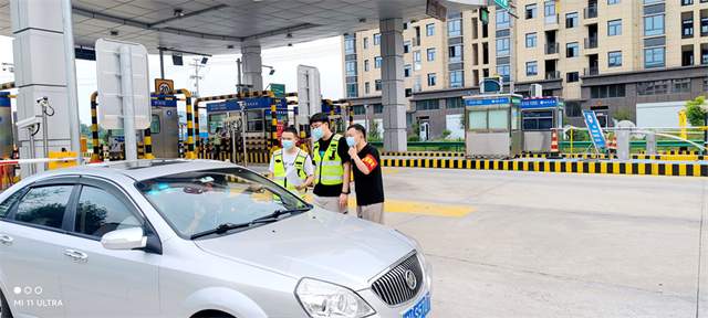 在团陂高速收费口,滚滚热浪中,两名身着执勤马甲的检察干警正在仔细查验过往车辆人员核酸检测阴性证明和健康码、行程码,车流不息,工作不止,不一会儿功夫就汗流浃背。