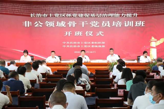 8月16日-17日,长治市上党区抓党建促基层治理能力提升非公领域骨干党员培训班在乡村振兴人才培训中心开班,并为全区非公经济人士理想信念教育基地揭牌。来自全区非公有制经济组织党支部书记、骨干党员、非公企业党建指导员参加。