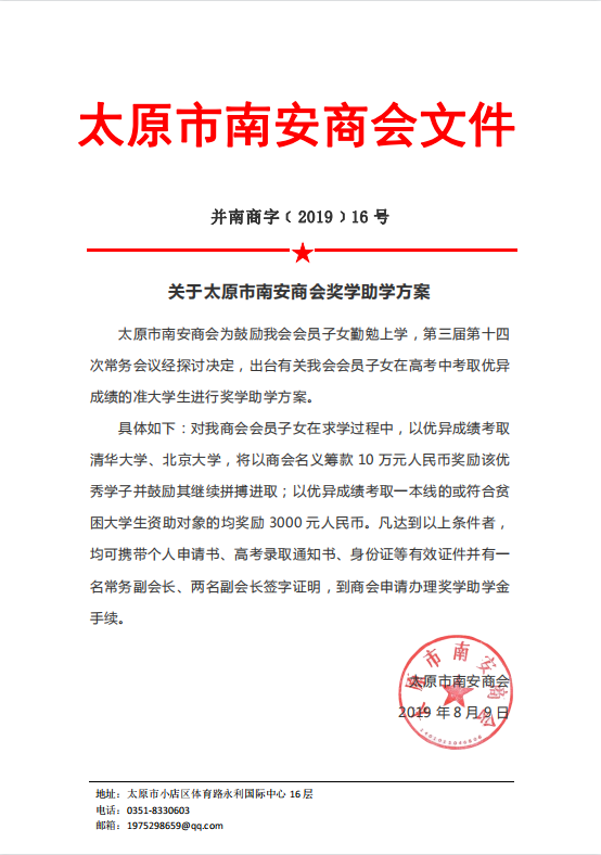 据了解,太原市南安商会自2015年以来,连续8年对以优异成绩考取高等高校及贫困求学的所属会员子女进行奖学助学。