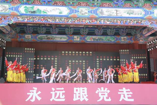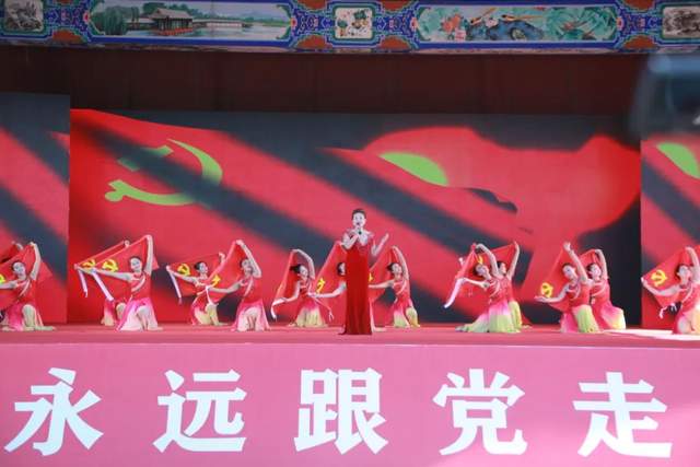 演出在歌伴舞《党旗飘飘》中缓缓落下帷幕