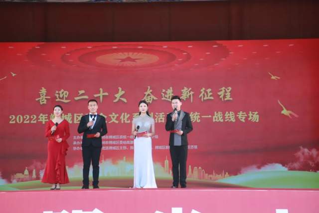 8月22日, 朔城区统一战线“喜迎二十大 奋进新征程”主题文艺汇演在崇福寺广场举行。朔州市委统战部副部长贾文统出席活动并观看文艺演出,区委常委、统战部长、宣传部长周翠英讲话,区领导贺宏丽、王秀梅、庞承先同广大市民一同观看文艺演出。