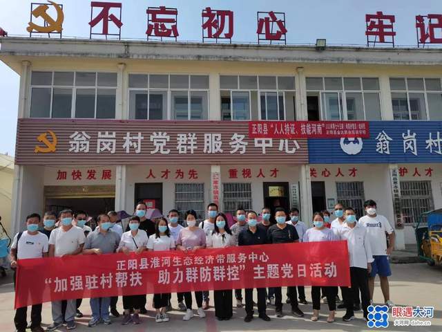 8月25日上午,县淮河生态中心组织党员干部近20人,在中心副主任李妍带领下,深入所包的寒冻镇翁岗村,扎实开展“加强驻村帮扶 助力群防群控”主题党日活动。