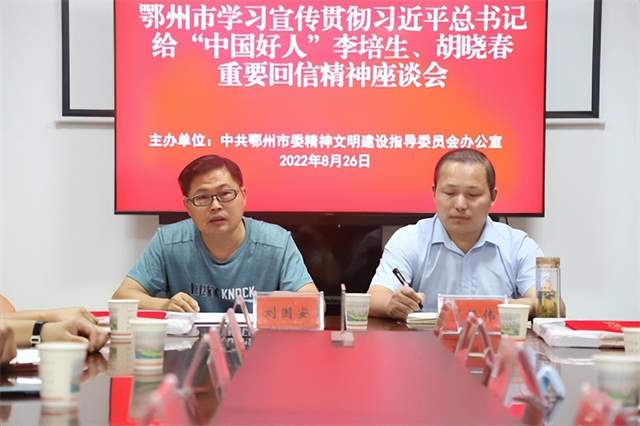 8月26日,鄂州市委文明办组织召开学习宣传贯彻领袖给“中国好人”李培生、胡晓春重要回信精神座谈会。