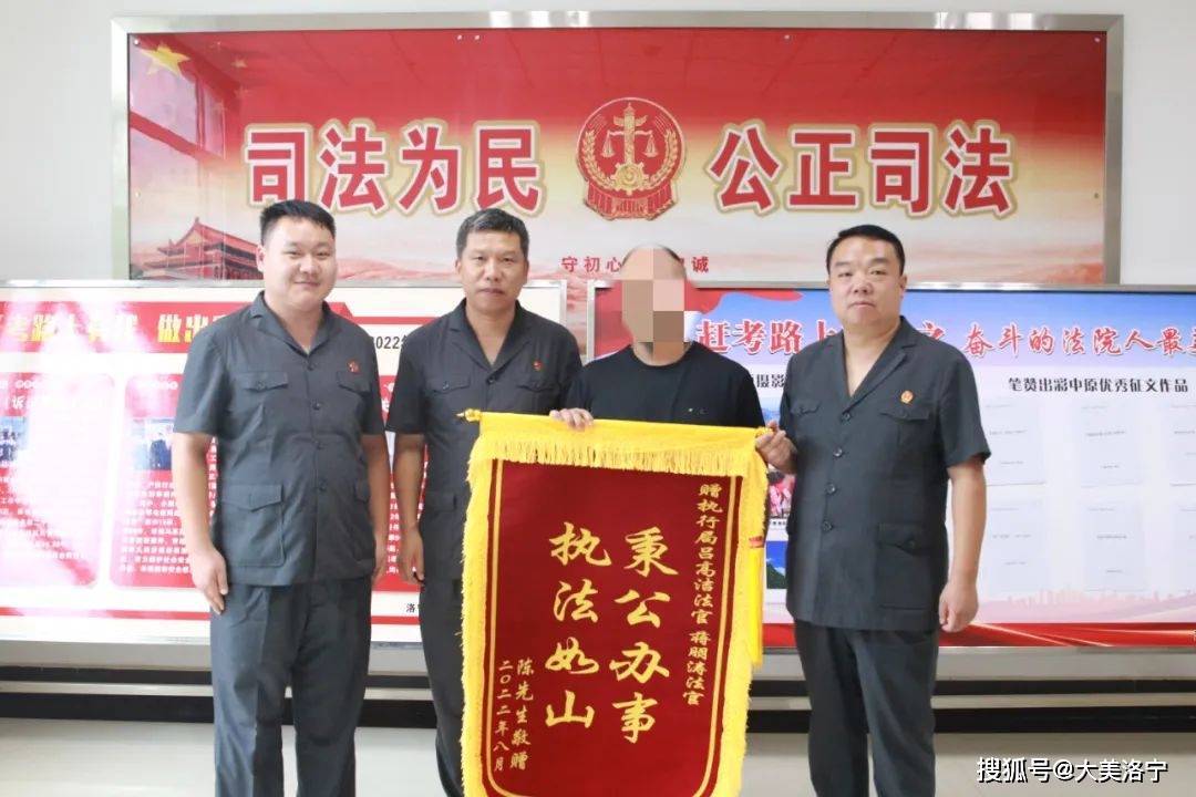 8月26日,执行申请人陈某将一面印有“秉公办事,执法如山”的锦旗送至洛宁法院执行二团队的手中。