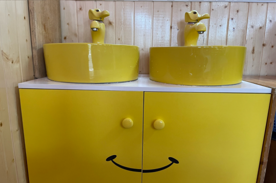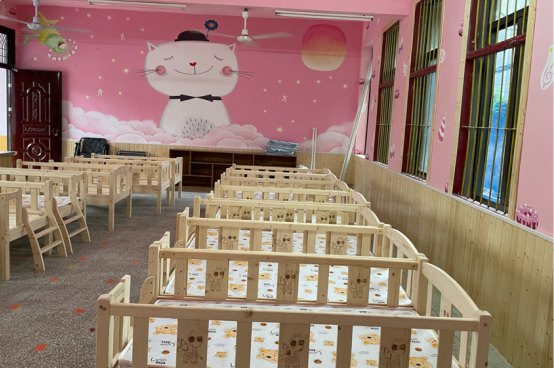 瞧!学校的操场全部换上了新装,变得更漂亮了。教室里更换了新的洗手池,更受小朋友们的喜欢了。寝室里都贴上了温馨的壁纸,摆上了崭新的睡床,小朋友们睡得更香了。