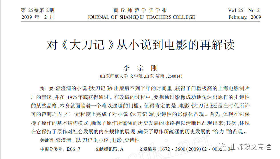 总的来说,在既有的中国当代文学史和中国电影史中,《大刀记》作为过渡期的一个重要文学现象和电影现象,一直没有进入到执掌着历史书写话语权的学者们的视野中。如果说我们没有在前人垫高了的平台上来审视历史还可以理解的话,那么,我们站在当下的文化立场上,就很有必要对《大刀记》从小说到电影给予必要的历史还原,从而对中国当代文学史和中国电影史中应该占有重要地位的《大刀记》予以重新的解读和评价。