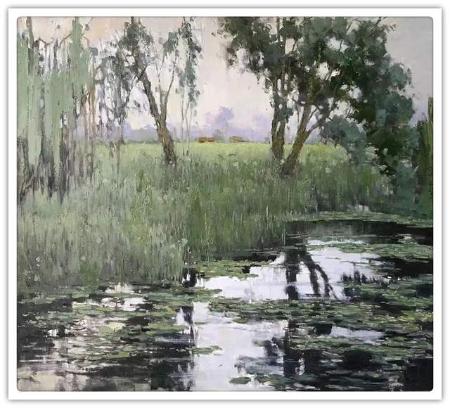 1957年梁显卿出生于中国东北偏远乡村,彼时的中国,物资匮乏,生活困苦。刚上小学时,发生了席卷全国的“文化大革命”,从此无知识可学,整日参加政治运动。但在这个人生阶段,画家在父亲的教导下,坚持每天习画,父亲也是当地知名画家。小小少年整日背着画夹四处写生,画画成了他少年时期最快乐和最幸福的事情。1975年,梁显卿年仅18岁,他的作品<出发之前>被中国美术馆收藏。小而美的风景总是能让他动容,那些景与物是属于他童年唯一的美好,池塘、红叶、藤蔓、垂柳…无一不是家乡的印象,画家把思念、爱和感动用画布表达出来,用沉浸作画弥补回不去的童年和远方家乡的遗憾,画风抽象模糊印证了那些被时代冲击的岁月,没有完整的快乐,没有安定的家园,没有无惧无虑的年少时光,食不果腹的日子,作画成了画家的精神食粮,画中地成了最大的向往。他的画作简单不失内含,柔美不失力量,朦胧不失光芒,动静呼应,虚实结合,丰富深度,他把中国传统文化融入到西方油画艺术中,用西方油画表达中国文化元素。他的作品文化性强、艺术性强、唯美,洒脱随性,可以称他为“诗人画家”。