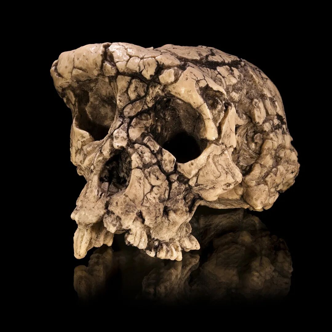 这个和黑猩猩头部大小相当的颅骨,从很多方面看上去像一种非洲猿类。但是它的牙齿指向了一些不同的情况。