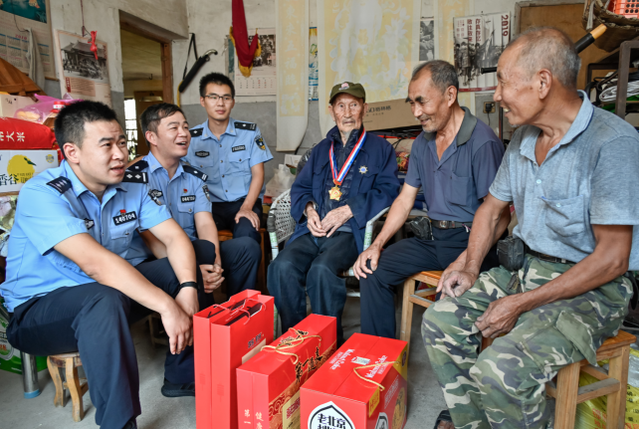 在嵊州市长乐镇水竹村,嵊州市武术协会的志愿者向98岁参加过抗战又参加过抗美援朝的原志愿军20军退役老战士刘方,赠送中秋礼物。刘方老爷爷在慰问时表示,当年在战场上,最冷温度是零下45度,仍然与敌人作战,好多战友都因为受冻牺牲了,说罢往事“潸然泪下”。