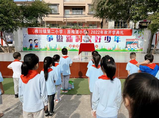 “片片绿叶寄寓着师长们的殷切期望,愿同学们在新的学年里长知识,长才干,长身体,长毅力,长理想......” 这一段师生的交流对话来自于梅川镇第二小学的2022年秋季的开学典礼。