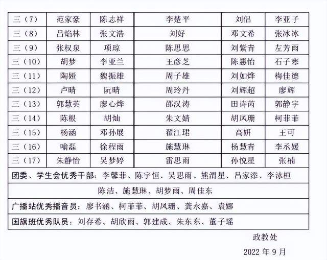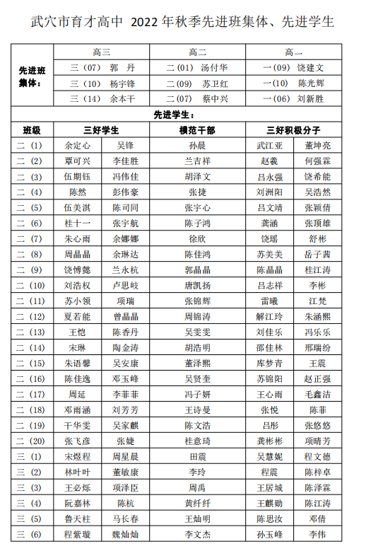 2022年秋季先进班集体、先进学生
