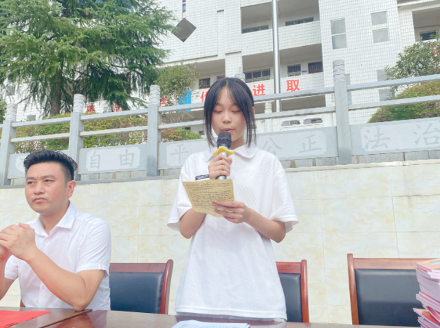 大会进行第二项学生代表发言。三名来自不同年级的学生代表都做了热情洋溢的新学期演讲,热烈欢迎新加入四望中学的学弟学妹们,希望大家在新的学期新的学校能够学到知识,能够成长,希望每个人都能更上一层楼变得更加优秀,希望每个人都能成为父母的骄傲,方不负寒窗苦读。