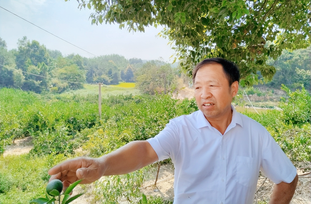“盖新房、娶新娘、上学堂、奔小康,全靠果园来帮忙。”在武穴市四望镇大蒋村树胜生态庄园看到,放眼望去,200多亩果园遭遇50多天的高温干旱天气,面对柑桔受灾严重,主人许永刚说:“抽了好几次水了,桔园干得太凶了,有的树都快要干死了,有啥办法“?上周日,记者来到大蒋村许家塆,顺着1公里山路,爬山越岭,终于见到了这一块的农民土专家许永胜。面对记者,这位60刚出头的土专家直截了当地说:“非常感谢原市委书记李新桥,他人很好,帮我们修了这条通向果园场的水泥路,为我这片果园注入了持续发展活力。李书记每次来都表扬我选对了“大分1号”蜜桔作为主栽品种,口感津甜、入口回甘持久,可就是今年的干旱影响很大……”。