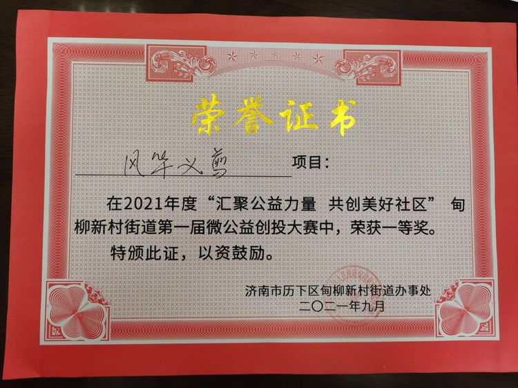 金秋十月,《风华义剪》项目在勇夺甸柳新村街道第一届微公益创投大赛第一名后,项目得到了历下区民政局、历下区创意园、历下区社会工作服务总站、历下区善治公益发展中心、甸柳新村街道办事处、甸柳新村街道第四社区的大力支持。