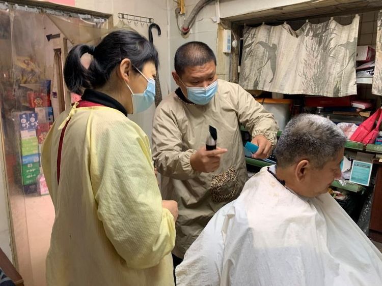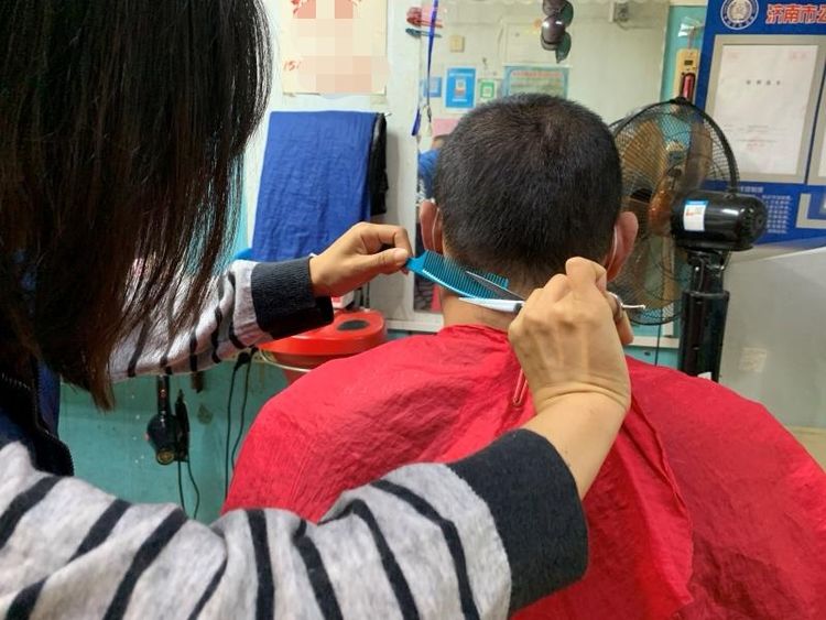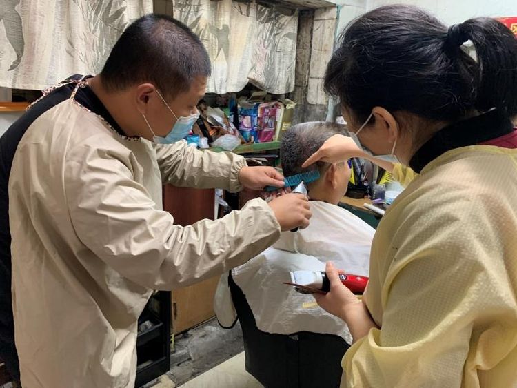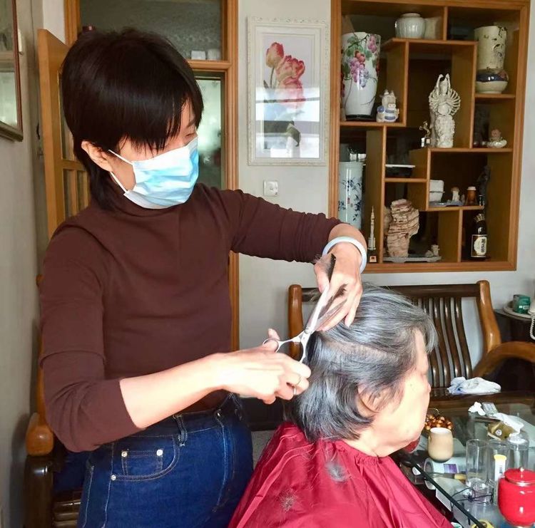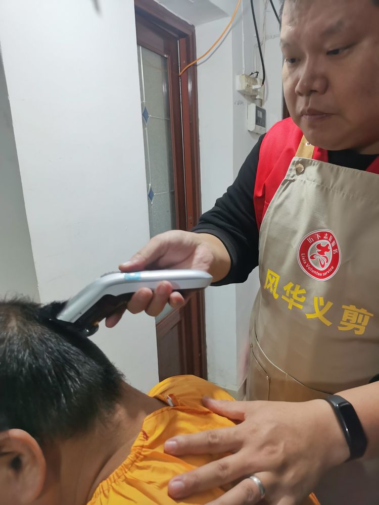 团队用专业精细的—理发功夫,服务辖区有需要的老人;