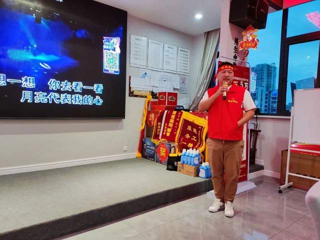 会议前,工程部魏主管献歌一首(月亮代表我的心)