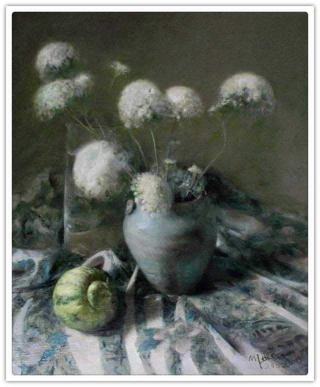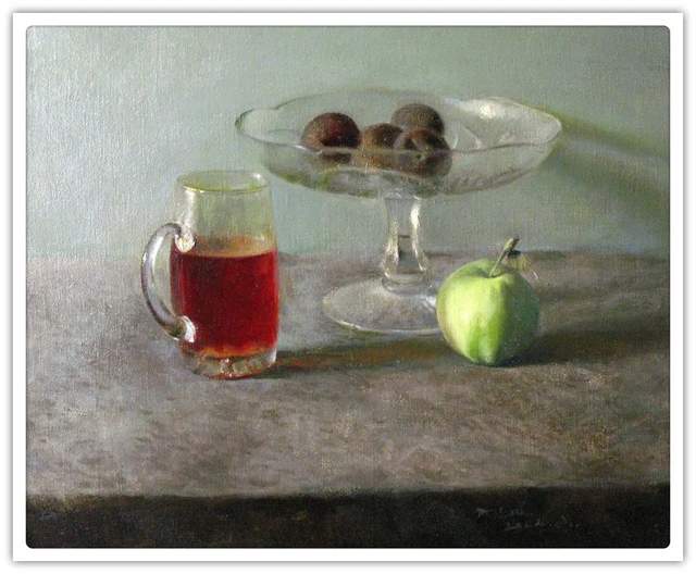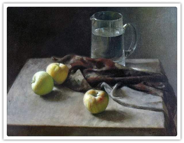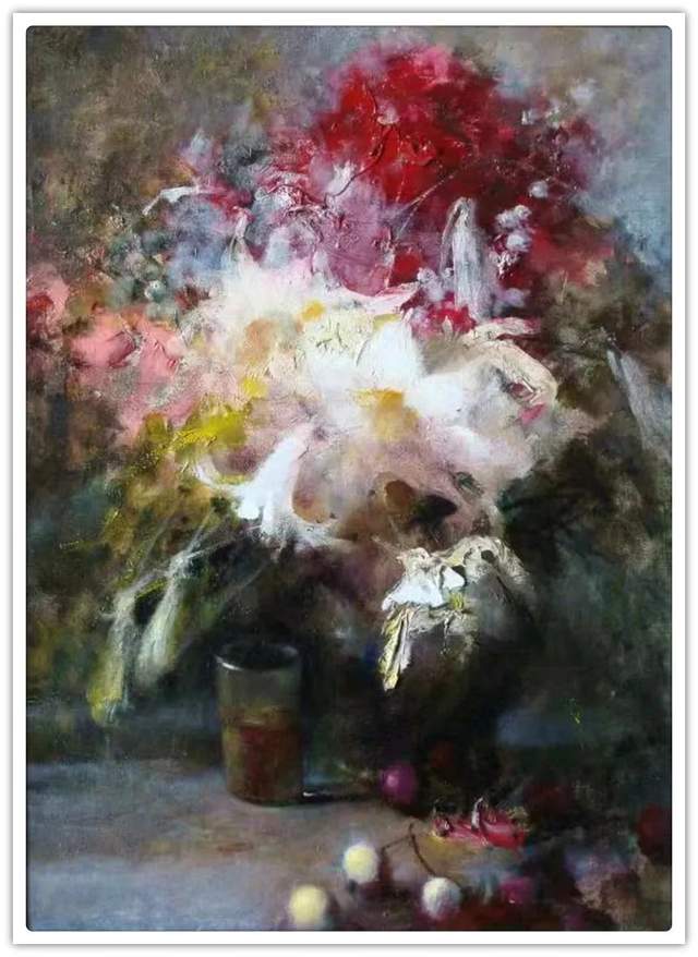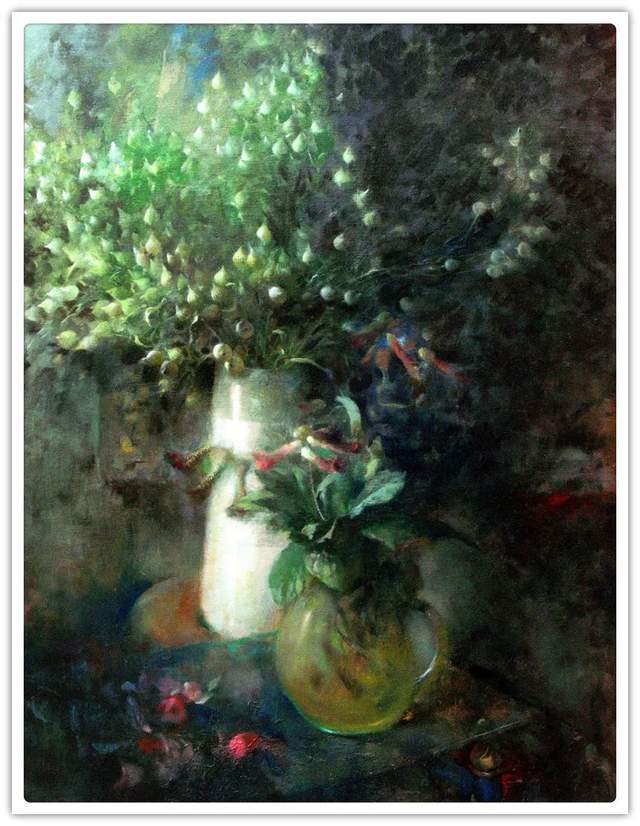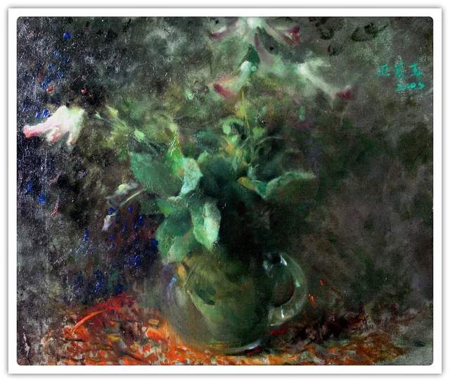 由于学习和掌握了宾卡斯的欧洲画派的技法(从直接画法转入透明法)使得张义春的静物画具有了较为纯正的古典主义油画风格。方法也能出精神,形式和内容其实是一种互动和辨证的关系。在他的静物画中我们不但可以看到深入、严谨而又丰富的语言表达,还可以在其中感觉到典雅、含蓄、静穆、庄重的美感,并且,还可以领悟到作品与人格对应,与自然对应的形而上意味。