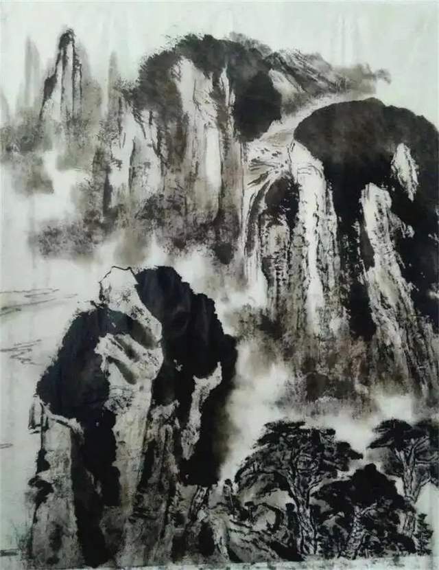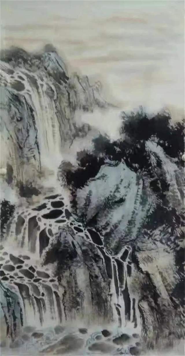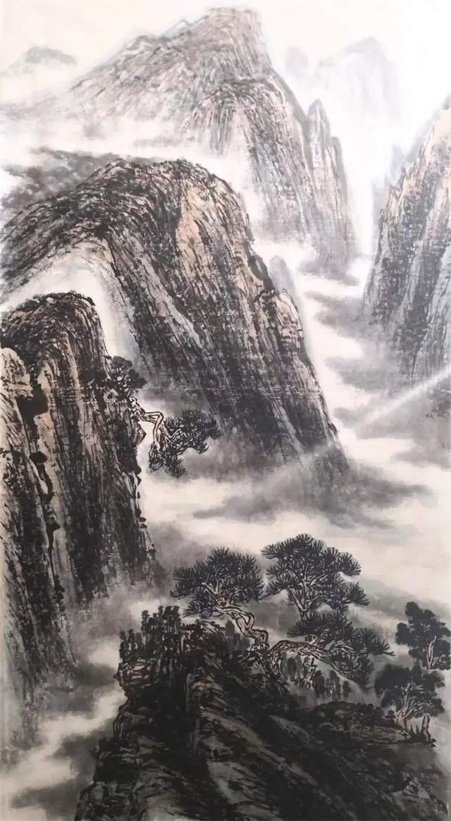 观张兴峰的山水,可以清晰地发现,他有着深厚的笔墨功夫和高超的艺术表现力,毫无疑问,张兴峰的艺术表现语言从传统中来,在他的笔墨中,有荆、关的雄浑,董、巨的苍茫,“元四家”的萧疏,吴门画派的明快,“清四王”的扎实,石涛的恣肆,黄宾虹的华滋,李可染的光影,亦有关山月的真实,“抱石皴”的影子,但是,张兴峰既不是传统的程式化语言,也不是近代诸家的一招一式,他以最大的功力打进传统,又通过最大的勇气打出传统,他的艺术语言凝聚着百家之长,充溢着干裂秋风的洒脱、润含春泽的韵致,诠释着属于他自己的独特风光,可以说,他的艺术表现语言是对古圣先贤的笔墨熟烂于心的自由发挥,是以时代的审美眼光,站在前人筑起的基点上,对传统山水诸多艺术表现元素的升华和延伸。