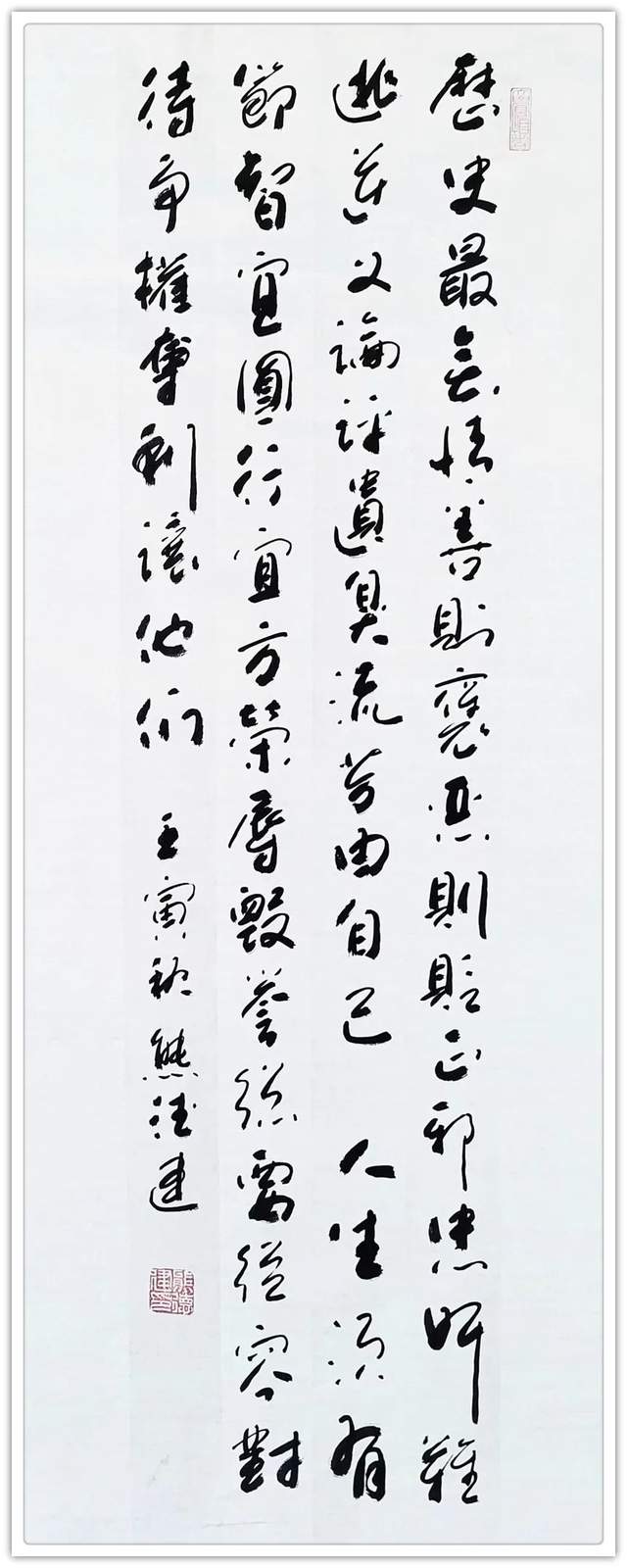 熊德建,号田园书人,中国田园书法践行者,田园书院院长,国家一级书法师,国礼书法家。1952年出生于浙江省千岛湖。从小酷爱书法,九岁始习书练字,五十余年从未间断。工作之余,颇好笔翰,每见古人碑帖则追仿临摹,未尝少倦。尤好行书,得益于二王、颜鲁公、米元章与王铎,驰骋于绳墨之外,回旋进退,莫不中节。逐步形成独特的、回归自然的、回归魏晋的、自然、原生、和谐、大气、灵韵、唯美的、既继承又发展、既传统又创新的田园书风,被誉为“中国田园书法创始人”。书法作品参加国内多种重要展览,数十次荣获一、二、三等奖并多次获得金奖、特等奖。在国内,多次成功举办个人书法展,并创建田园书院。吴洪浩、邓向阳、罗翠兰、程林辉、黎传绪、田继学、史峰、江继良等多位著名学者、专家对熊德建田园书法的研究文章达四十几篇,十万多字,已初步形成田园书法理论体系,这一现象在当今书坛并不多见。国内多家电视台、报刊、杂志、今日头条、雅昌、人民网等新闻媒体,多次为其做过专访和专题报道。二零一八年其作品通过外交渠道赠送给吉尔吉斯共和国元首,成为中吉两国文化交流国礼,并受到吉国副总理以及文化部长的亲切接见。二零一九年被收入文化部文化艺术人才资料数据库管理。大量作品被国内许多知名机构、组织以及海内外书法爱好者和收藏家收藏,其作品有很高的升值空间和收藏价值。