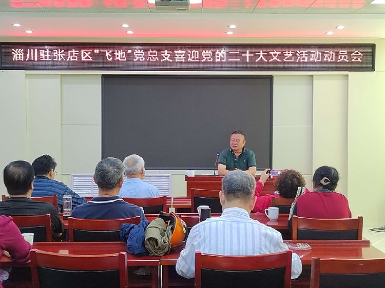 9月27日上午,淄川区驻张店“飞地”党总支喜迎党的二十大文艺活动动员会在淄博市老干局“本色家园”活动中心二楼会议室举行。党总支书记徐勤森总结了“飞地”总支近期工作情况并对喜迎二十大庆祝活动作出具体安排部署。诗词、书画、编辑、歌舞、美篇、西河诗词分会等各职能小组负责人纷纷登台表态发言,将精心抓好节目准备,诗词书画,载歌载舞,喜迎党的二十大胜利召开。