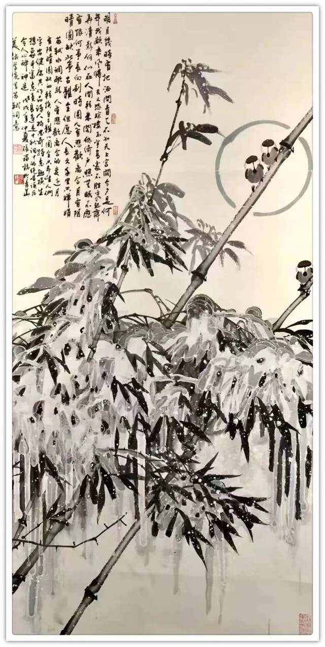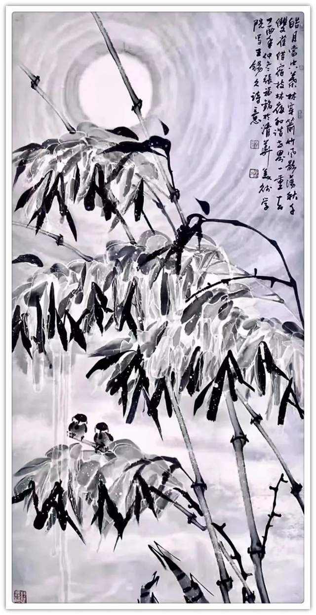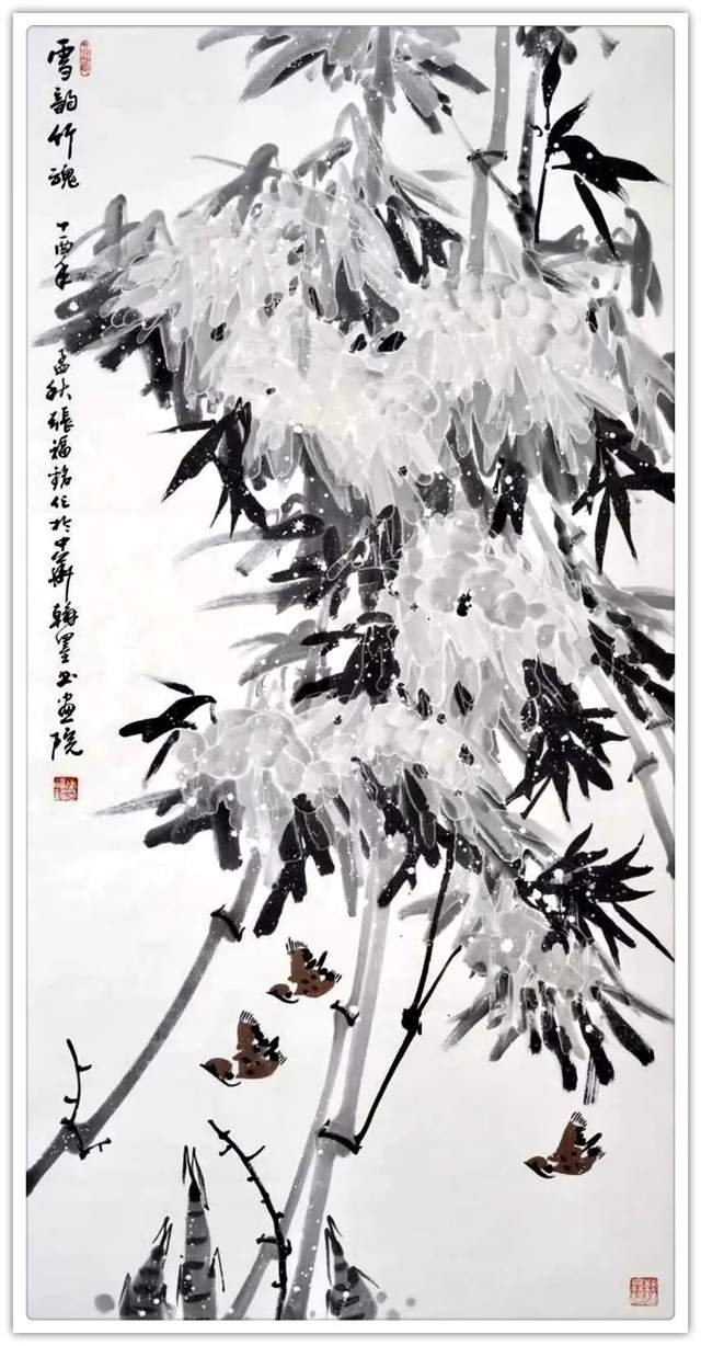 写竹还需八法通!画画与书法有着同源之本,画家不作书法修养,书家不谙丹青之妙,这实在是书画分流之弊。张福铭先生则有书法同源的见地,也有书画同修的才华,经过取法为上的磨砺,最终达成了书画同得造诣的功成。所以观赏他的作品,有以书入画,以画益书的文人风范,这种风范在笔墨里作古今永传,可以成为文化龙脉的中流砥柱!