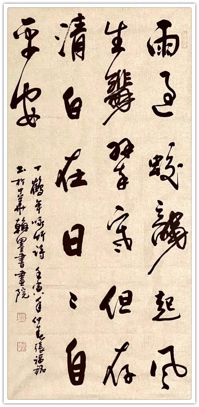 作為當代书法大家歐陽中石先生的弟子,张福铭先生写书法,走的是一条取法文人法帖的正大路径,师晋韵之妙,写宋意之雅,也参意唐人书法的丰姿多神,经过心追手临,可以写透文人书法的天质自然。诸书皆成,尤其以遂手应手的行草为要妙,起笔落笔,高低有趣,牵丝映带,锋钎往来,不粗糙,不造作,心手双畅,同自然之妙有,非力运所能成!写得这一手富有文人格局的行草作品,需要有临池不辍的磨砺,还需要书性超人的才华。磨砺与才华相互加持,让他的书法法度严谨,却又不呆板,可以执笔抒情,兼可畅志。